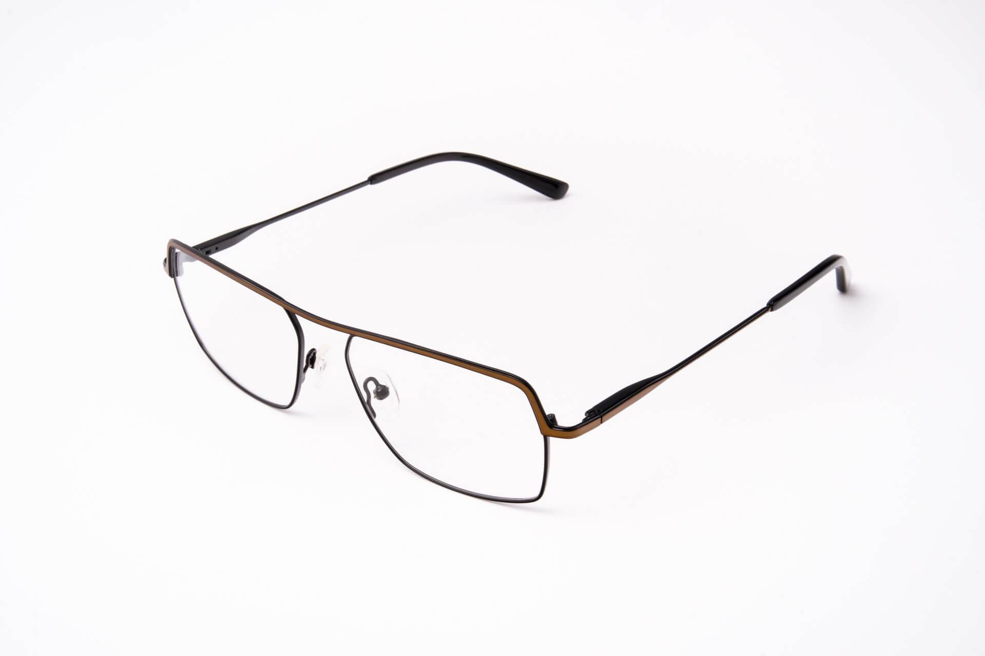Metalowe oprawki o niebanalnym wyglądzie. Ten stylowy model opraw przypadnie do gustu panom, którzy lubią bawić się modą i stylem. Kwadratowy kształt szkieł połączony belką na górze sprawdzi się doskonale dla panów o małej bądź średniej szerokości twarzy.