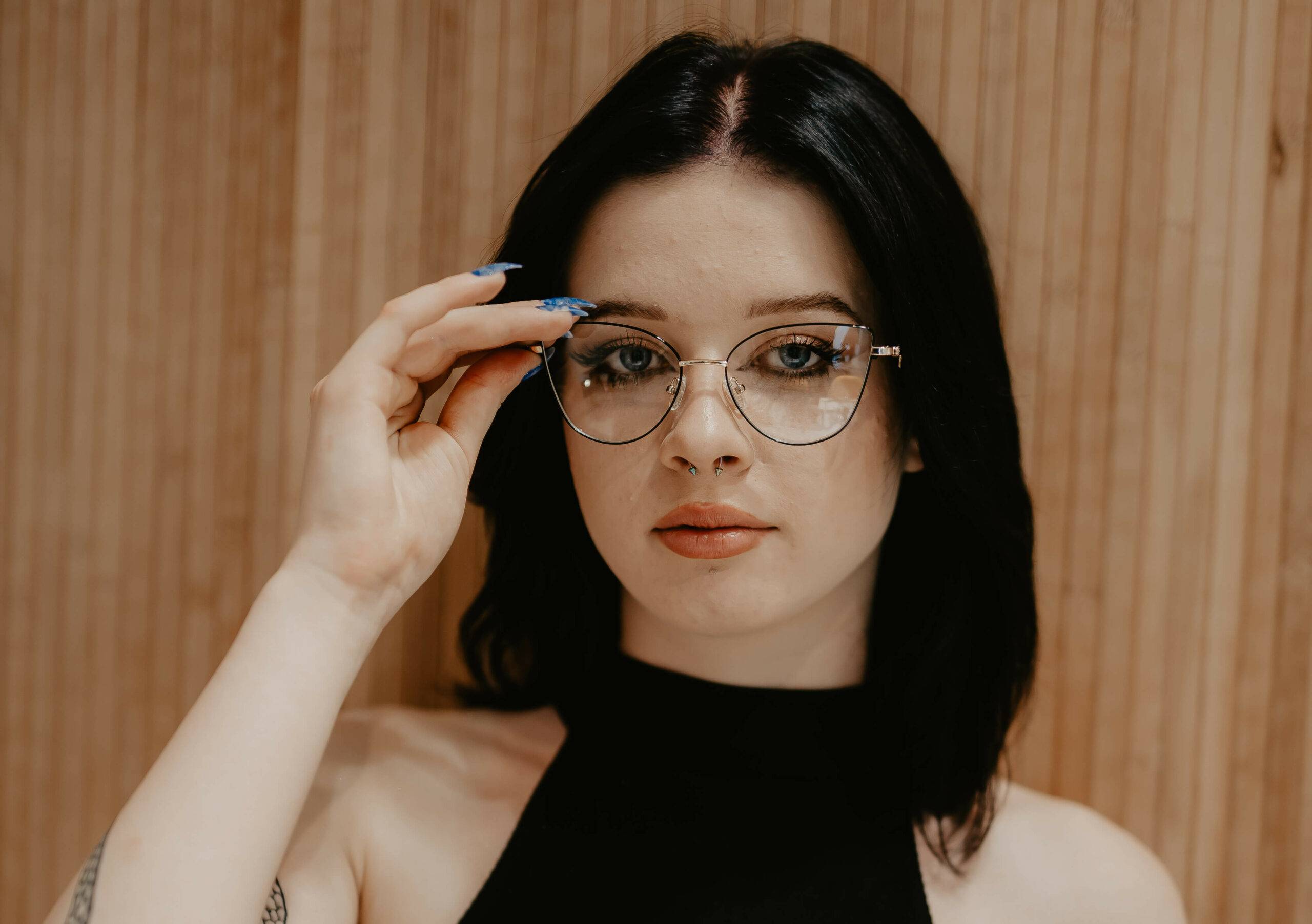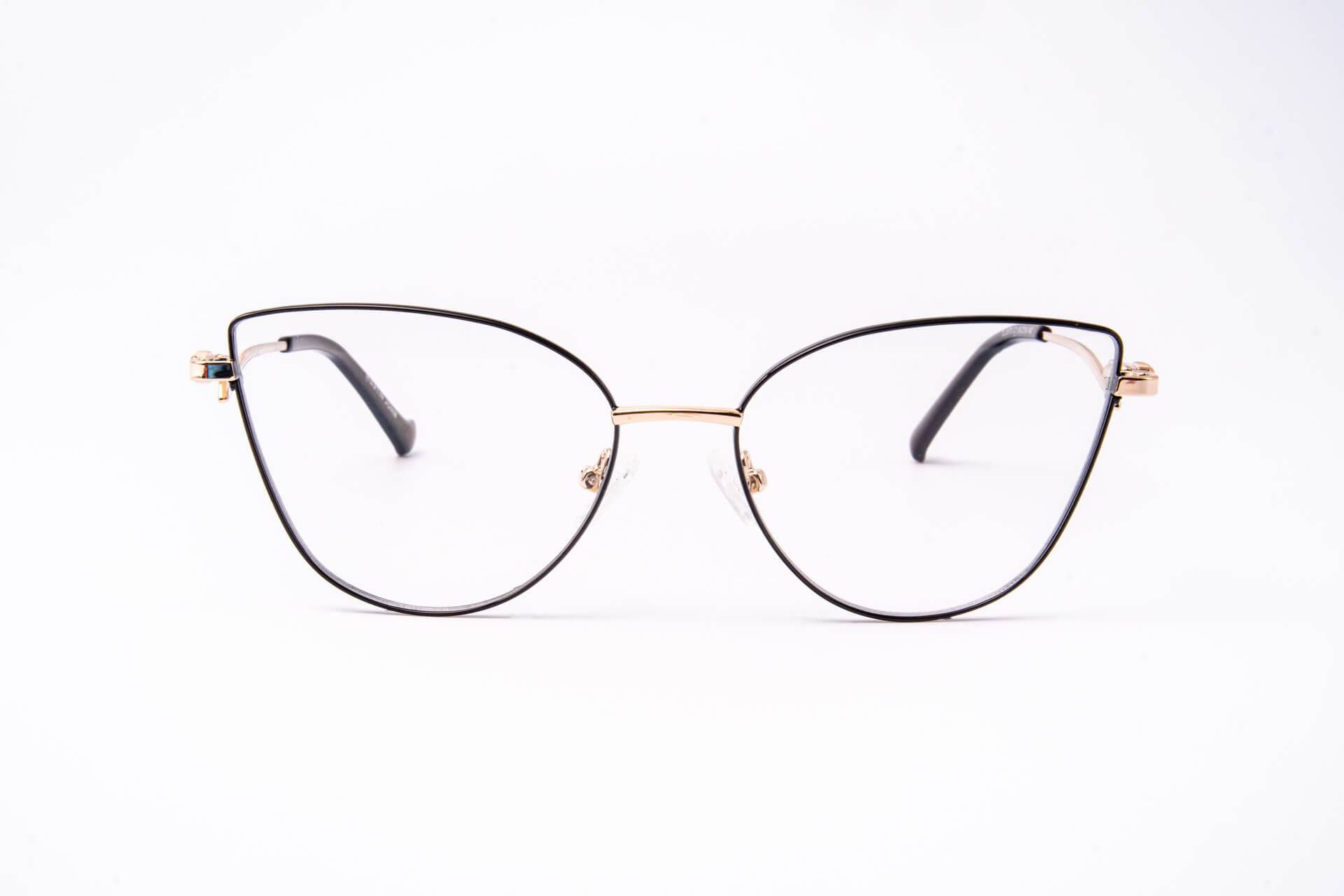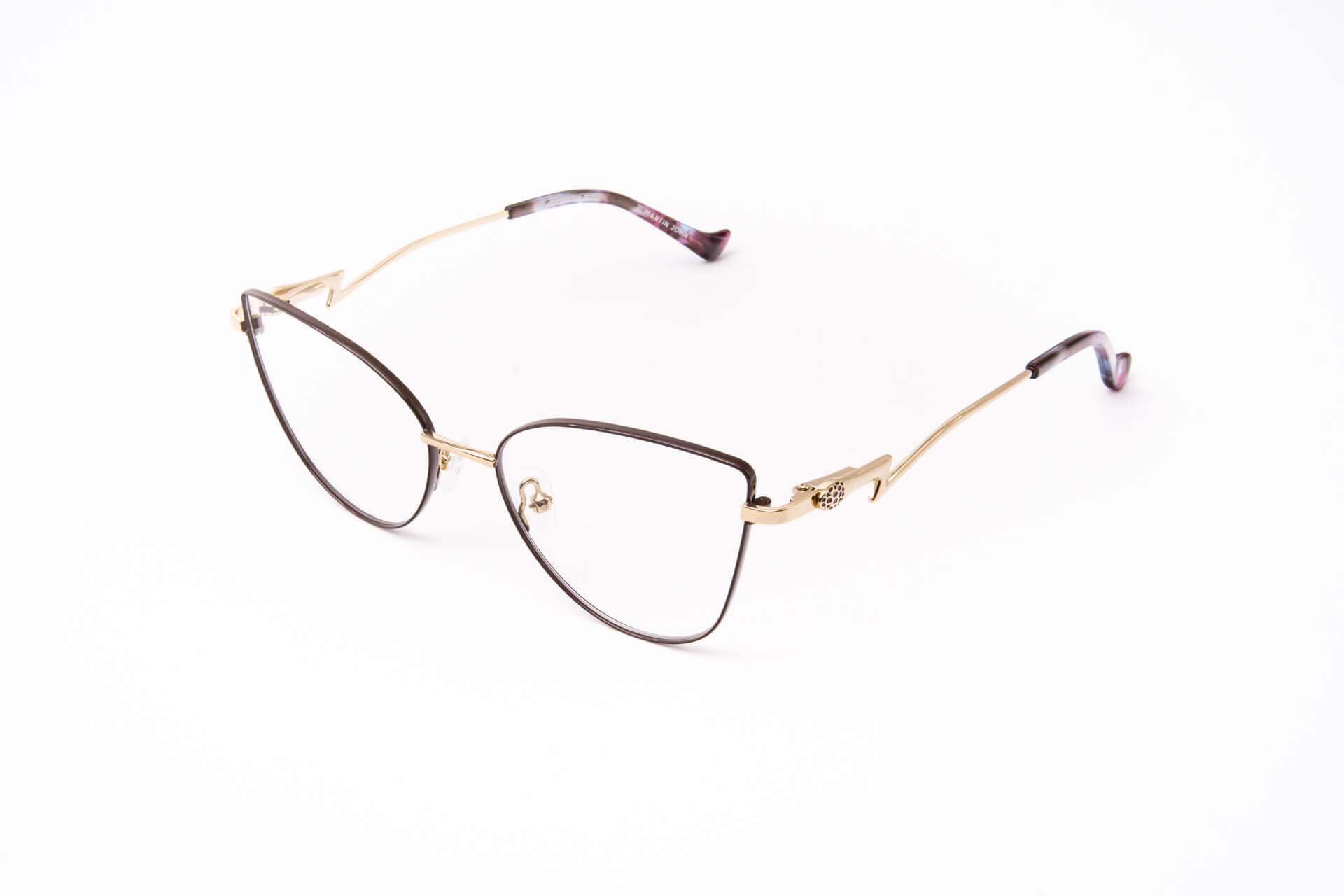 Metalowa  oprawka w kształcie kociego oka.  Eksponuje  kobiecość i  podkreśla rysy twarzy. Nietuzinkowy zausznik z delikatnym zdobieniem nadaje tej oprawce uroku.