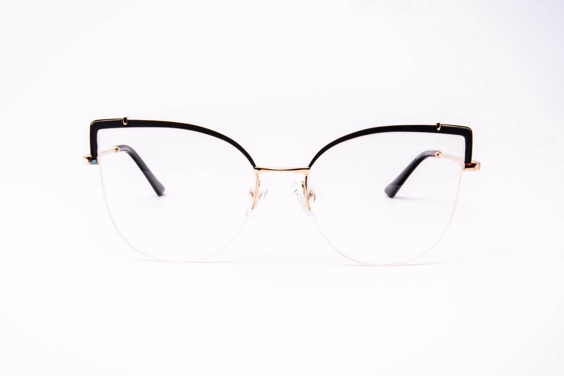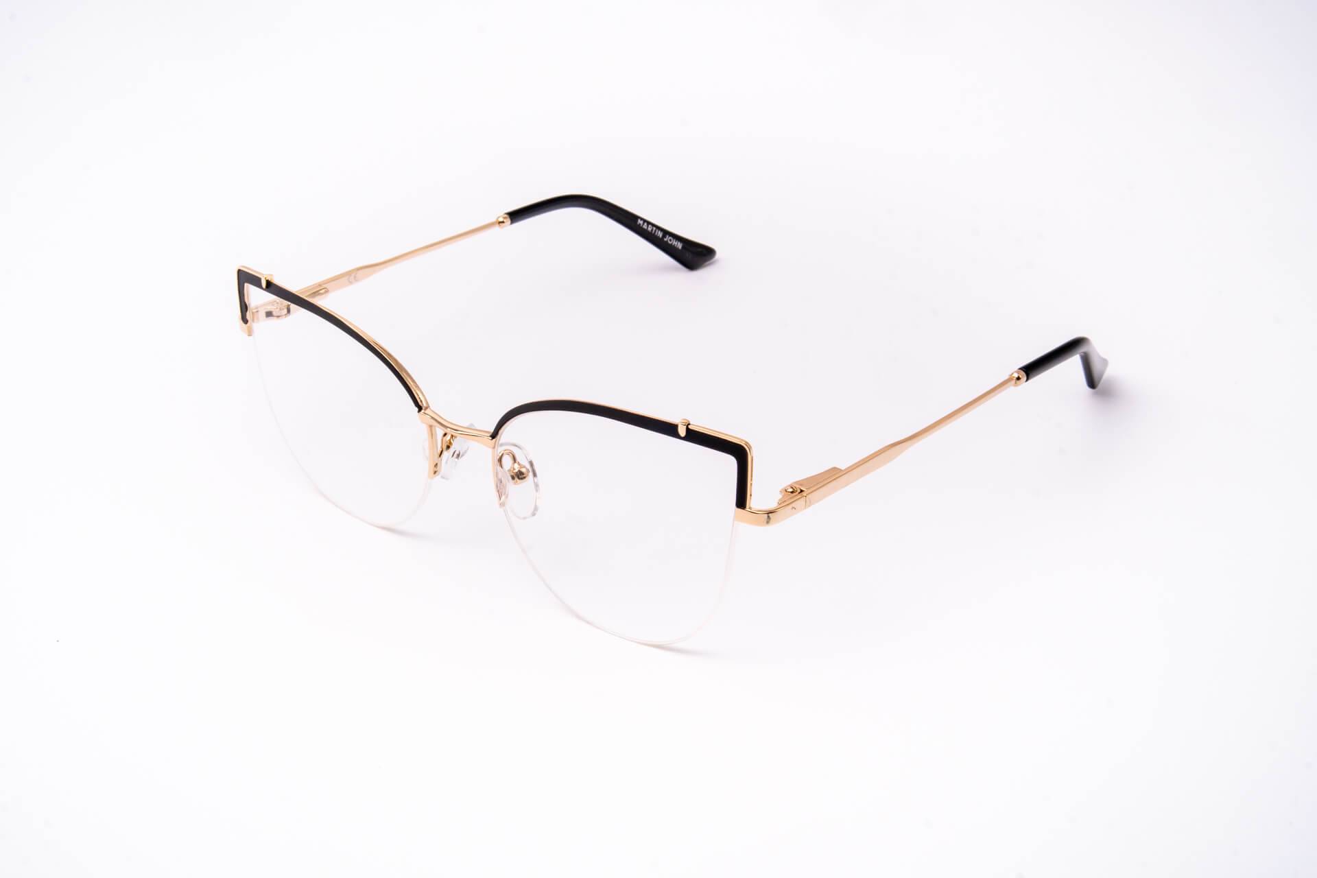 Oprawka półpełna w kształcie kociego oka z ozdobnym frontem i złotym zausznikiem. Ten model oprawki nada mocny charakter Twoim stylizacją.